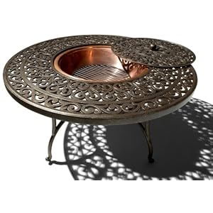 - Lid removes to expose recessed, bright copper 22-by-7-inch fire bowl